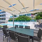 A Villa Aqua Residence az olyan önellátási lehetőségek mellett, mint a konyha, étkezőt is kínál. Az apartman továbbá úszómedencét kínál az erkélyéről.